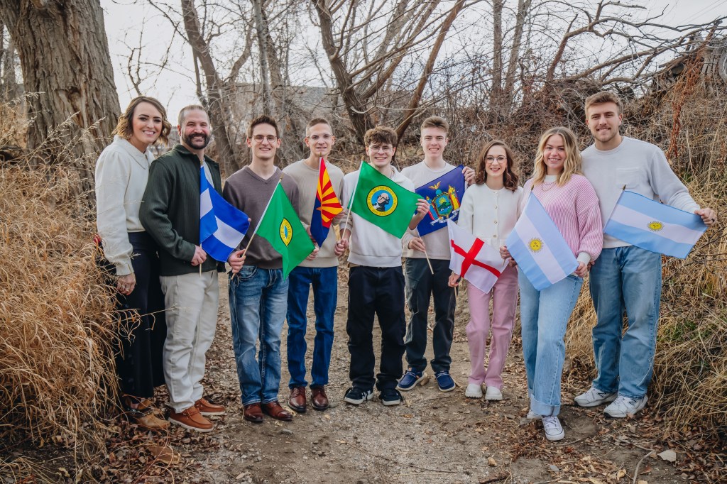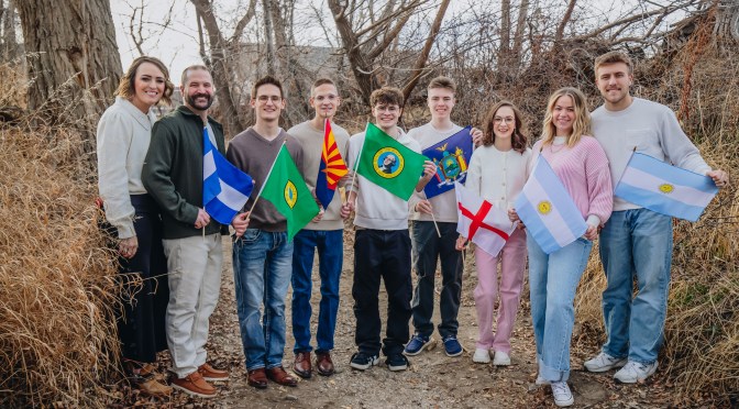 Above: The Stoddard family in January 2026. Bryson had returned from Argentina, married Annie – who also served in Argentina. Joseph just returned from his mission and all of the other Stoddard children had received their mission calls. All missionaries shown with their mission flags. Compare to the 2013 photo.